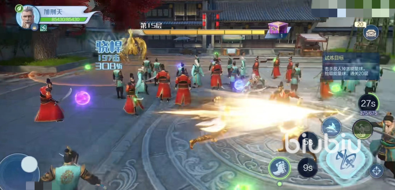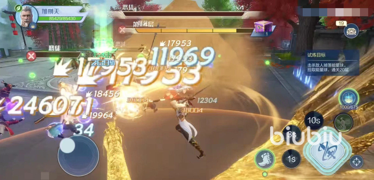 加刑天使用的是一把长剑,能够对敌人造成近战输出。自身普攻可以对周围目标造成击飞伤害,在技能使用之后会朝前方发射出三道金色光芒刀气,造成路径上所有敌人伤害和击飞,同时技能还带有护盾和减伤效果,这样使其在众多目标围攻中依然可以屹立不倒。