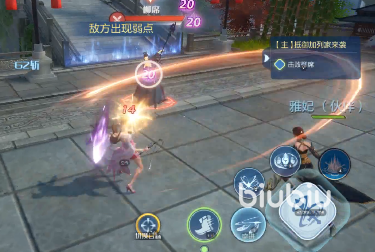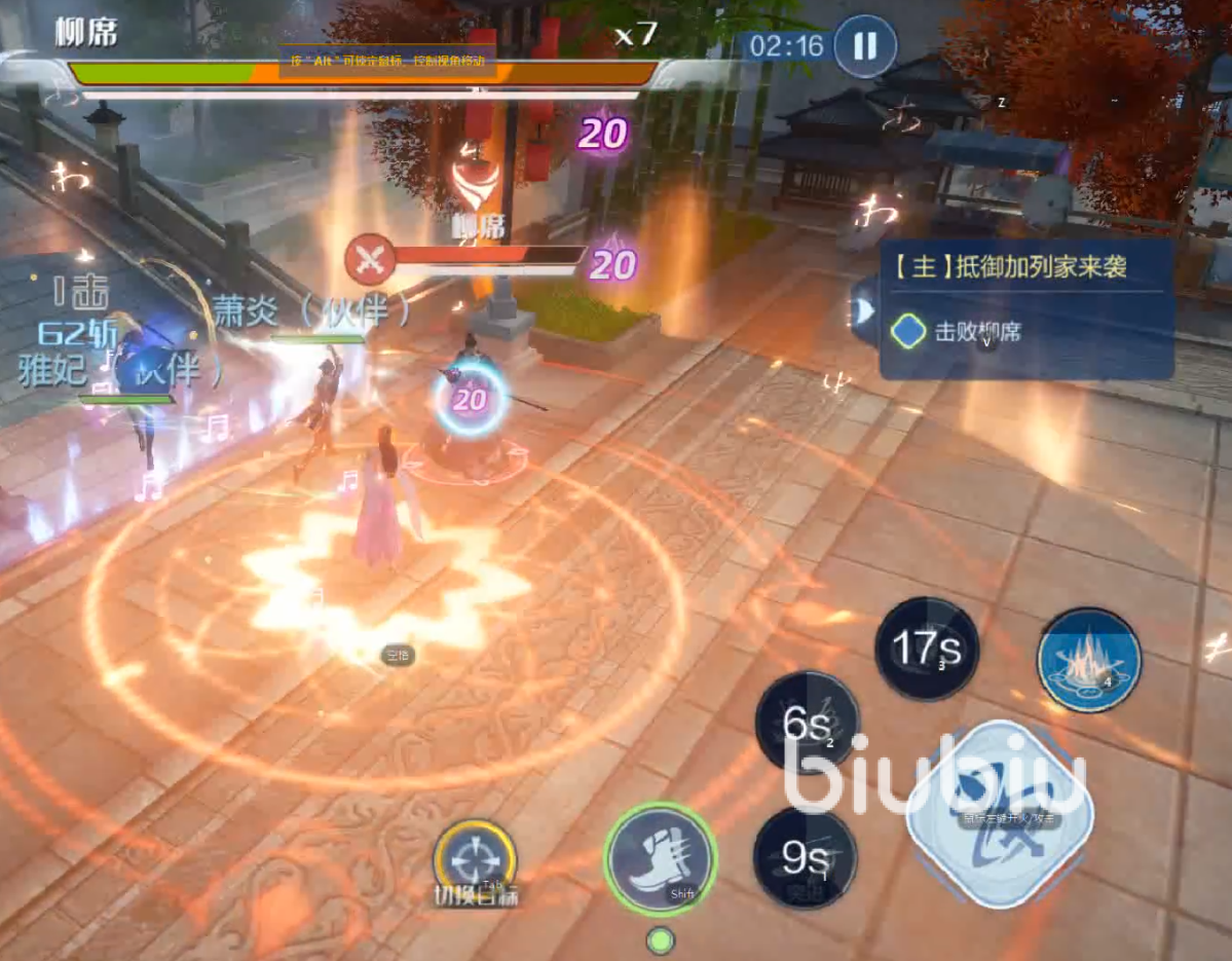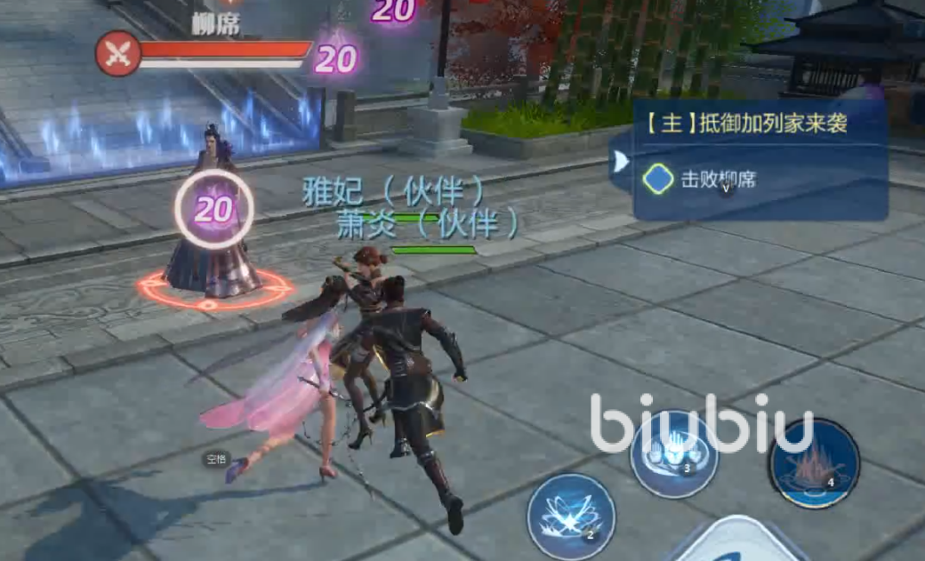 由于柳席是法师,会释放范围性的法术伤害。所以大家最好站位集中一点,然后近身作战。这样就可以避免所有人都受到伤害,这时候萧熏儿就会直接冲上去攻击,大家站在他的身后打掩护,不断地释放技能即可。
