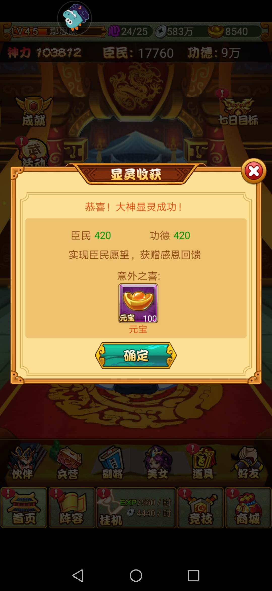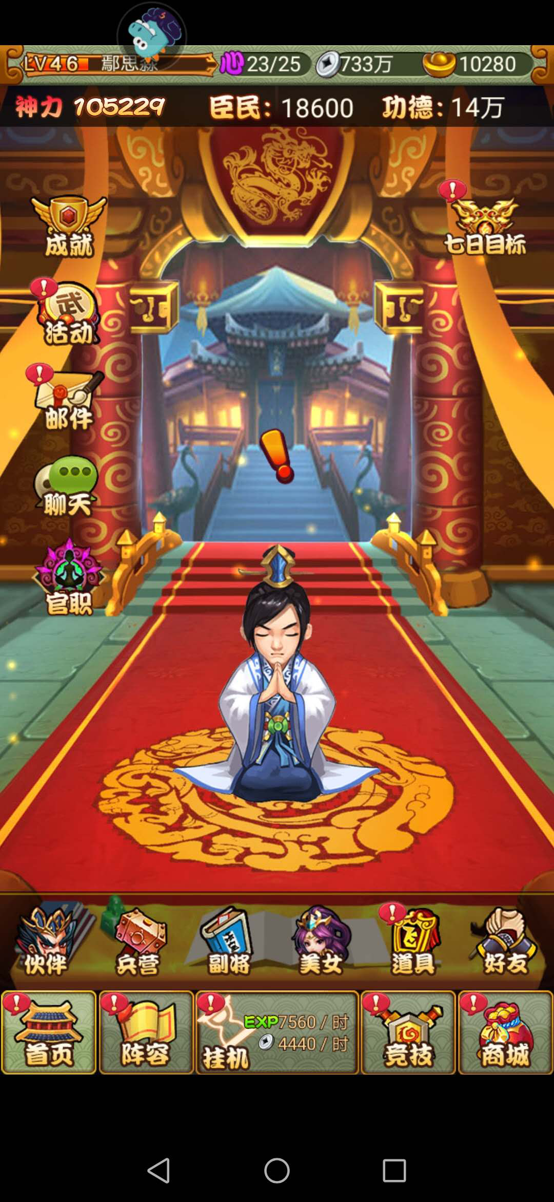 功德在每天的大殿处理政务的过程中就可以获得,所以大家每天一定要勤于政务才能天下归心。再就是首充礼包、登入礼包、等级奖励等都有大量功德赠送。