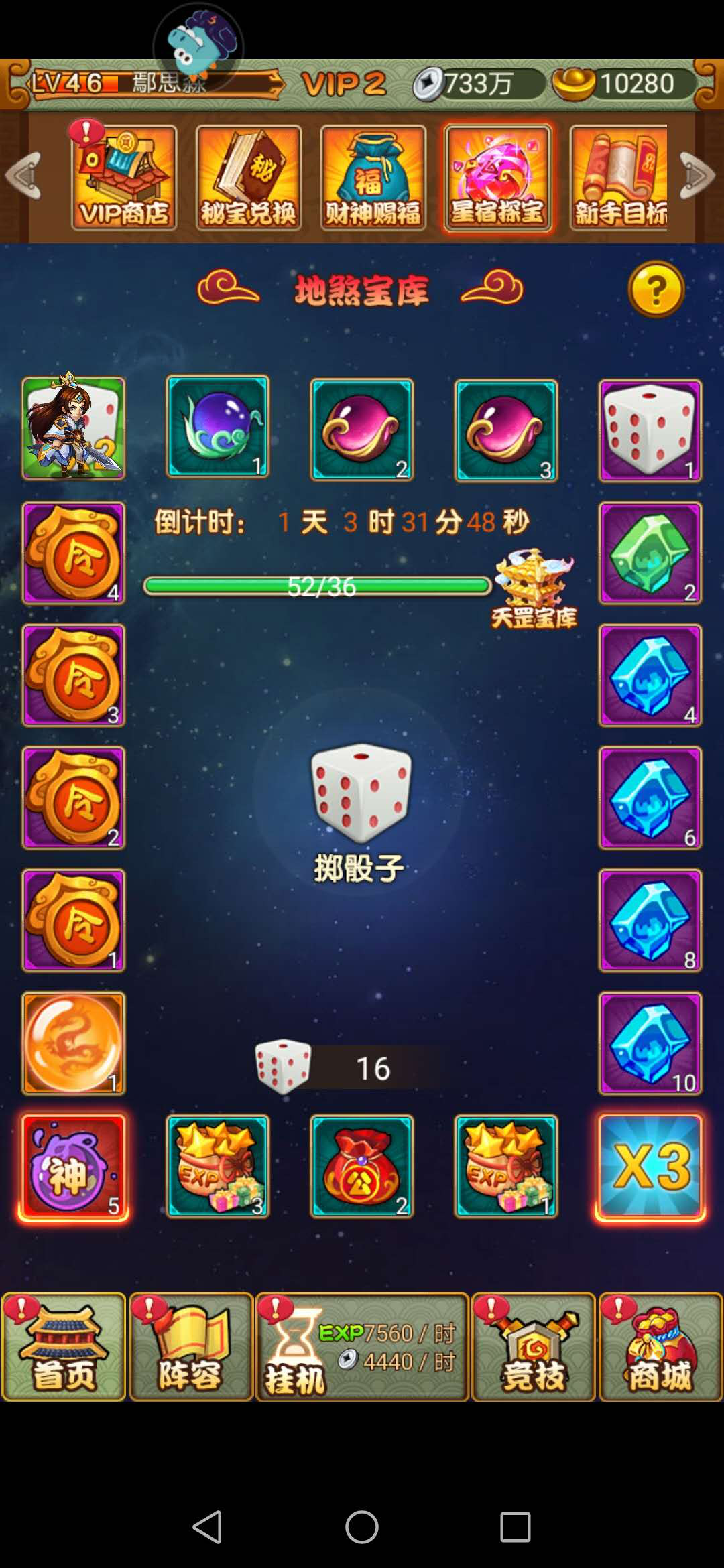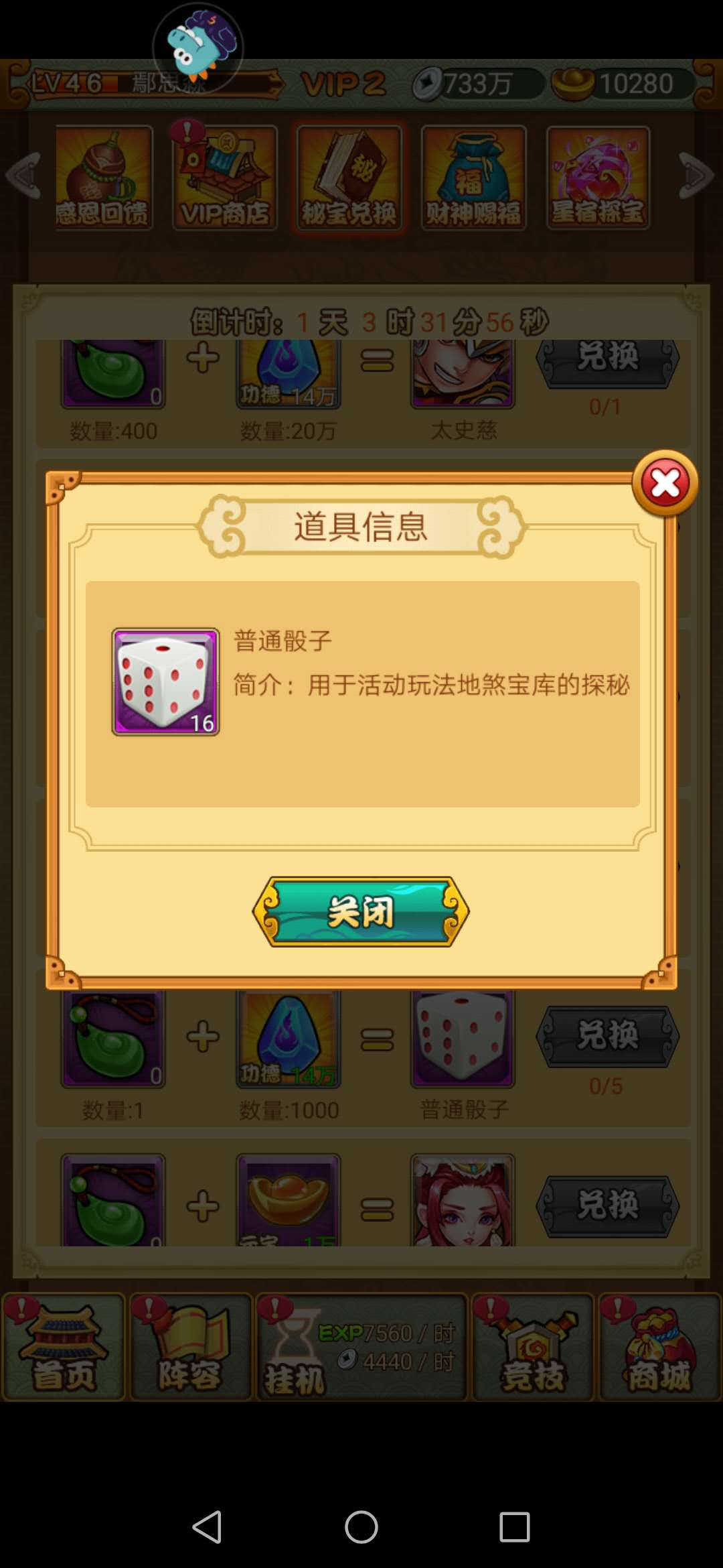 集齐了足够的翡翠宝玉和功德后,小编建议大家优先兑换骰子这个道具,因为骰子可以用来参加星宿探宝活动,而星宿探宝中的奖励都是非常丰厚的,运气好了还能获得红色武将的整卡,性价比很高。