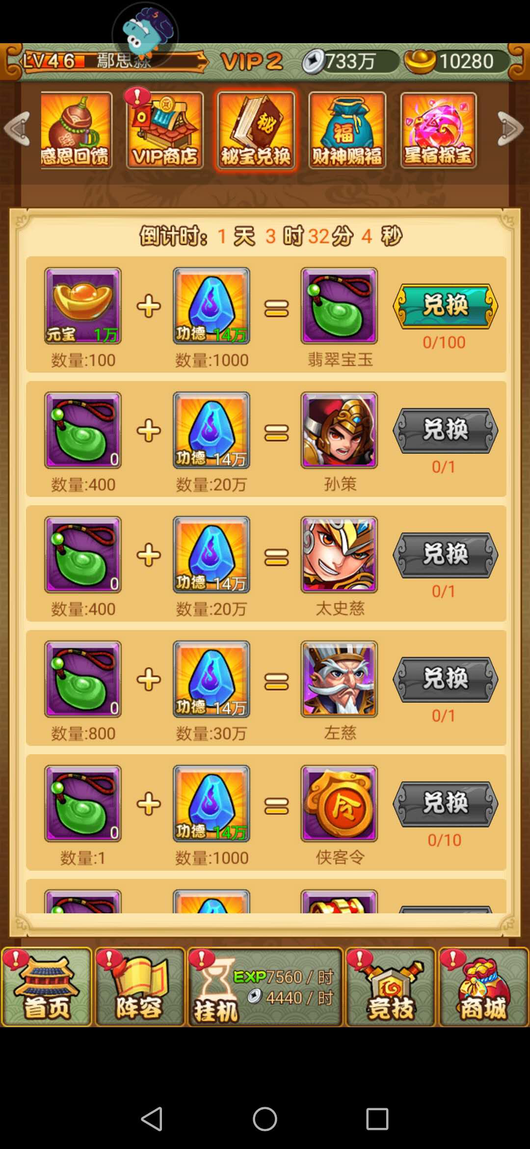 点击游戏主界面上方的活动选项,在活动栏目中往后拉就可以找到秘宝兑换的图标了,秘宝兑换中的物品非常多,而且并不是一成不变的,每过一个周期就会进行一下更新,不过大体上就是兑换强力武将、宝箱、骰子、各种宝物等,下面小编就给大家详细介绍一下。