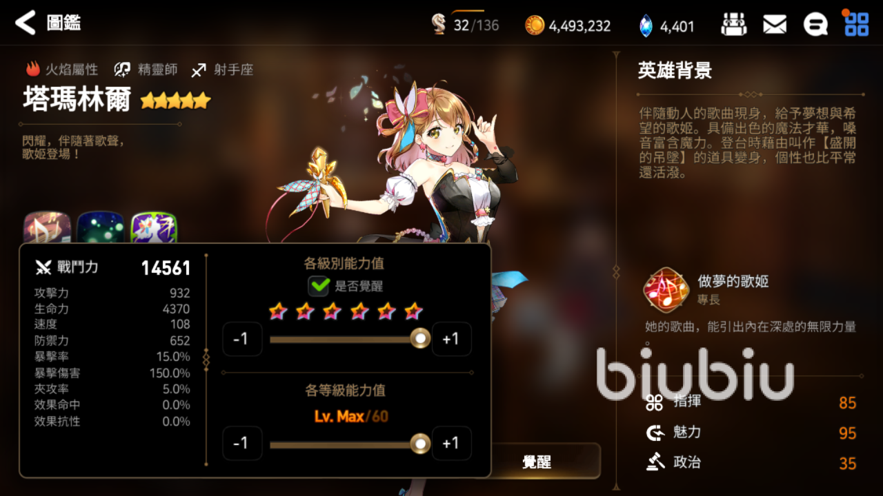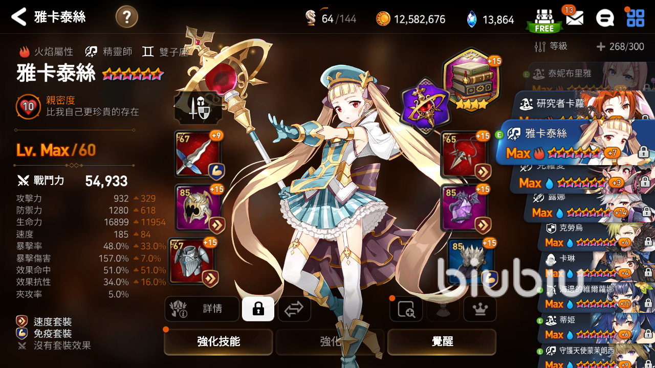 2、输出角色:还剩下两个输出位置,同时为了能够更加效率的通关,因此还需要满足三个条件,分别是破甲、驱散己方、AOE群体输出。同时为了能够稳定进行驱散,因此速度一定要快,而且要保证能有65%以上的命中才行,不然是有翻车几率在的。