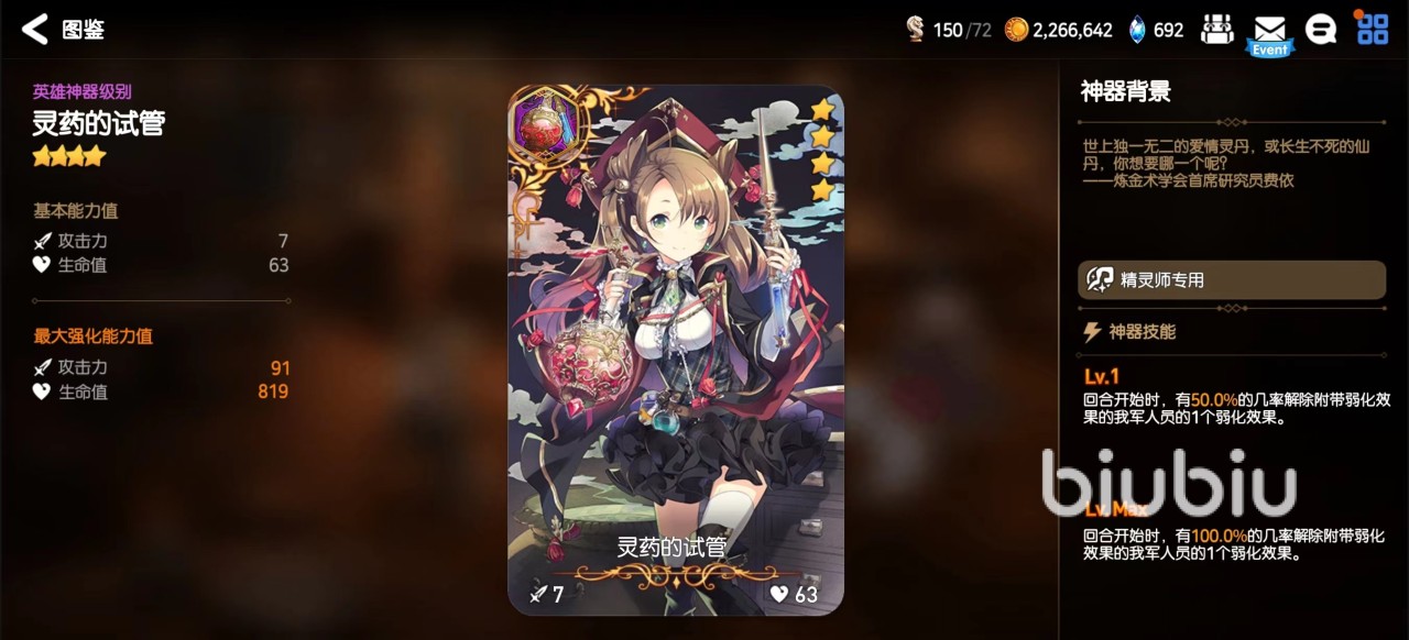角色定位是奶妈,在装备的上也选择辅助类型,起到增益和减益类型的也可以,不凋零的回忆可以把艾蕾娜的奶量再做一个提升;灵药的试管可以让她在对战控制类型敌人时有更出色的表现,技能和神器都带有驱散能力,对方不管是debuff和控制效果都得认栽。