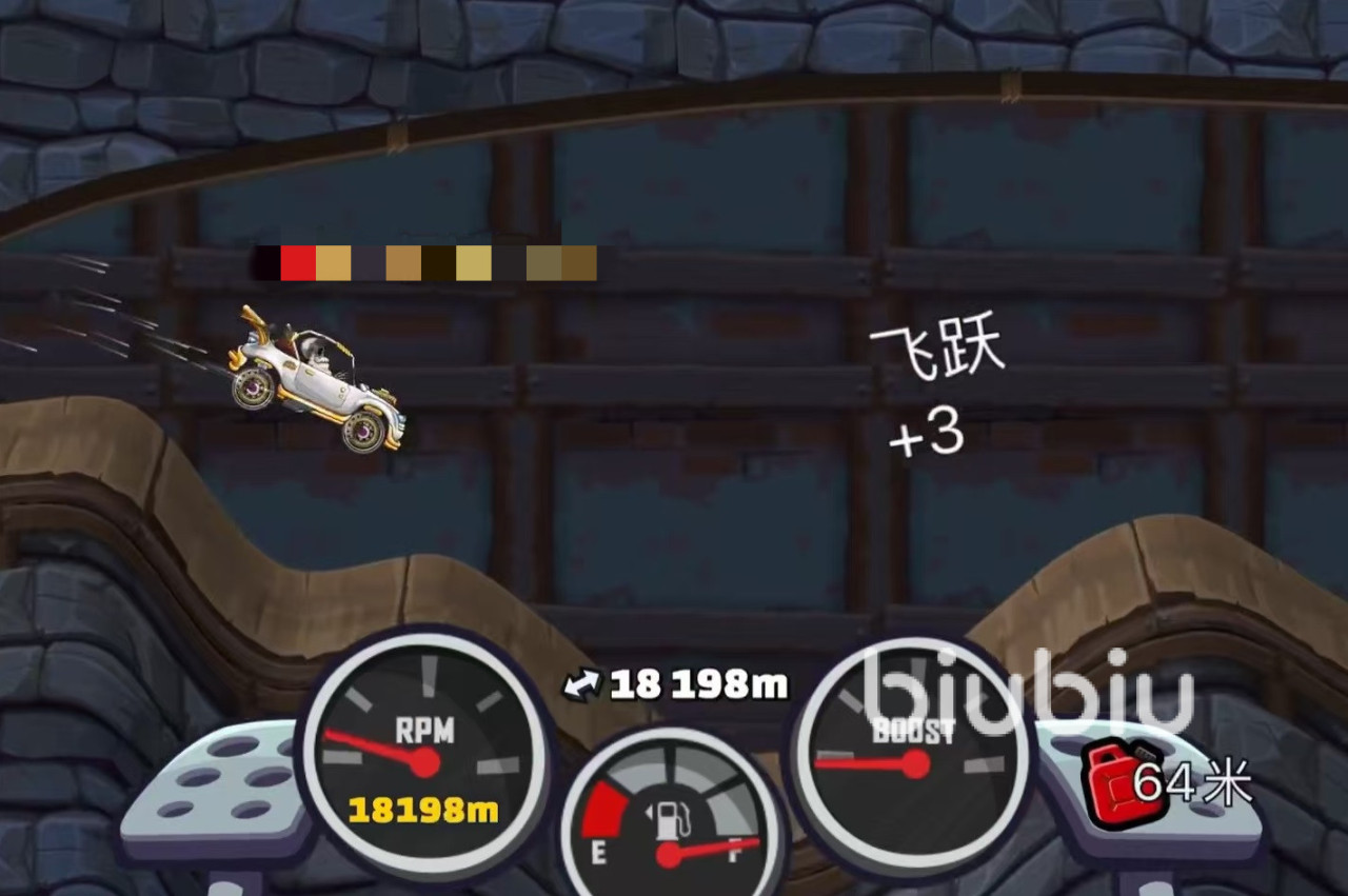 因为在此图有着非常多的上坡和下坡地形,一定要利用好上坡之后的跳跃,这样可以节省很多时间,但是在跳的时候尤其要注意千万不要落地出现翻车,不然会直接导致挑战失败。在落地时就要调整好车身。最后就是在运行过程中要尽量多的去吃到金币和补给等道具,这样才能往前方开得更远。尤其是吃到油料非常关键,很多玩家就是忽视了油量,所以导致开到一半车辆没油。
