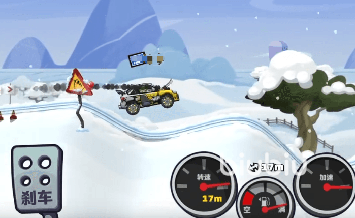 由于冒险地图很多且各有不同,这边就挑一些讲解一下,首先是月球地图,这张地图的主要特点就是重力很低,过它的时候建议选登月车,这个车辆有同时按住油门和刹车可以短暂击飞的能力,再加上地图本身的低重力,两者结合就能在地图上面不断起飞,刷出远距离飞行的金币奖励。