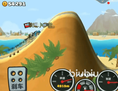 然后是传送带地图,这里记得选择雪地摩托来过,先用雪地摩托在传送带上反向翘起,这样就能不断触发单轮驾驶特技的金币奖励,最后是沙滩地图,这个地图的落点是关键地方。