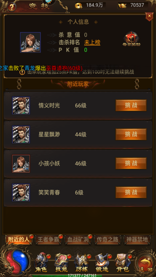 (2)竞技功能:玩家也可以使用游戏中的“竞技”找对手PK,胜利之后有几率直接得到神装,这个这个方法就比较看脸了。