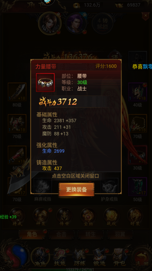 (7)充值获取:充值给的传说装备属性和等级都非常好。