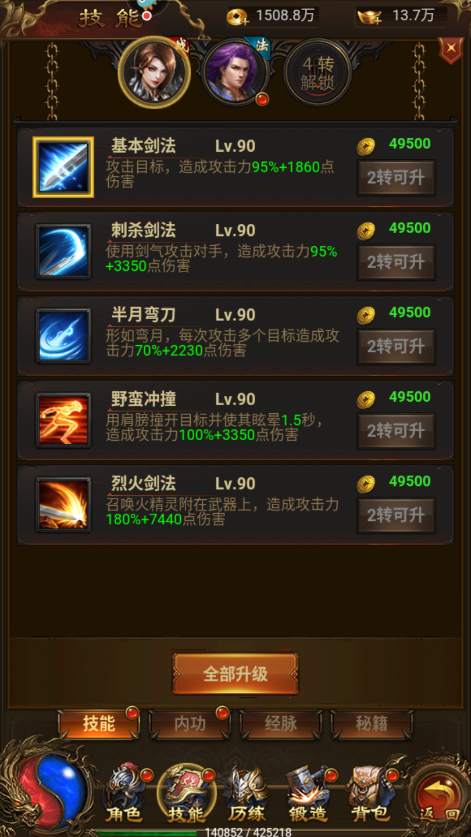 2、第三个职业推荐选择法师,法师的爆发非常的高,但是非常的吃技能等级与装备,最后期把法师拿出来刷攻击高的副本和PK用。