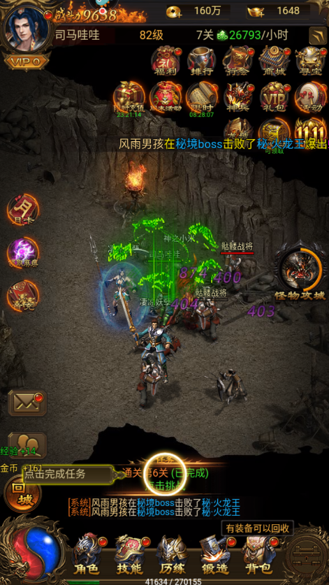 2、如果选用道士作为开局,那么前期由于有个宝宝爬塔的能力是比较突出的,但是中期会略显乏力,毕竟通天塔的BOSS的伤害要高出其他副本很多。在面对个人副本的时候也会稍显尴尬,这个是和爬塔一样的问题,但是越到后期就越能看出道士的伤害,持续输出能力是其他职业所不能比的。