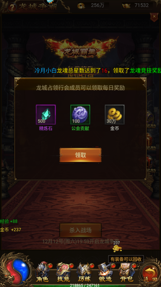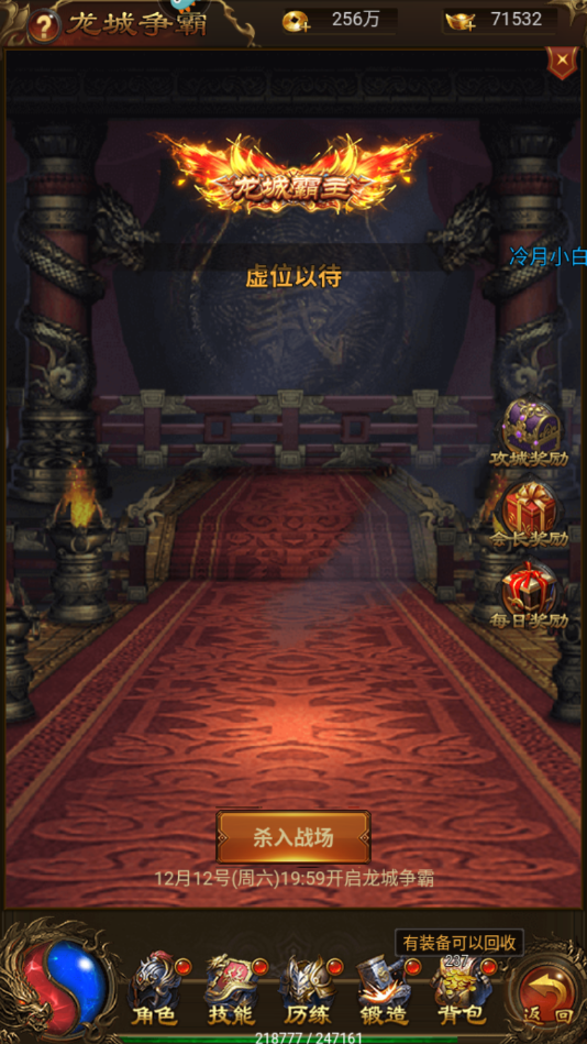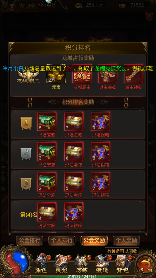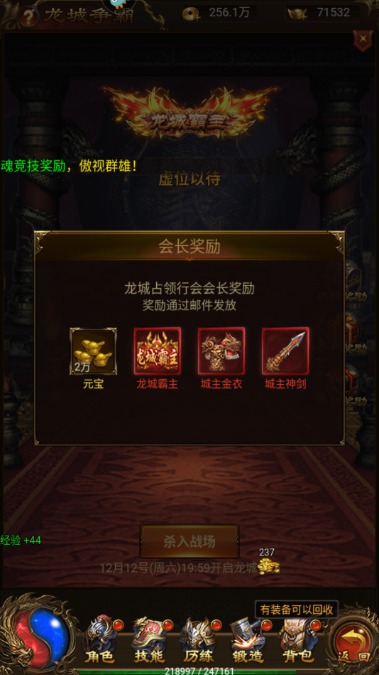 (2)每日奖励:2W元宝、龙城霸主(这是个称号)、城主金衣、城主神剑。