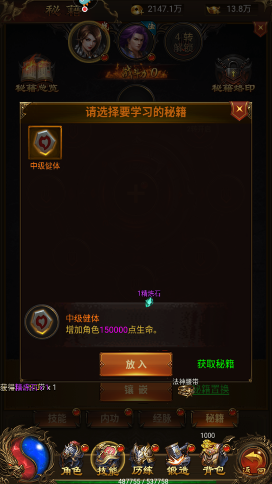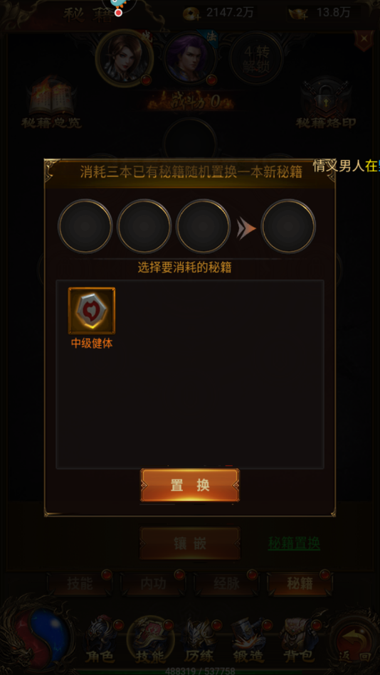 3、如果镶嵌的是高级的战狂之力,那么之后会代替中级的战狂之力镶嵌上去,即使没有多余的位置也可进行镶嵌。