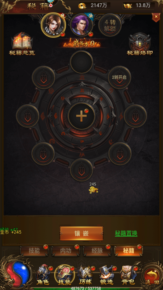 (1)镶嵌位置:想要镶嵌战狂之力是需要宝石孔位的,玩家每达到一次转生可以开启一个宝石孔位。