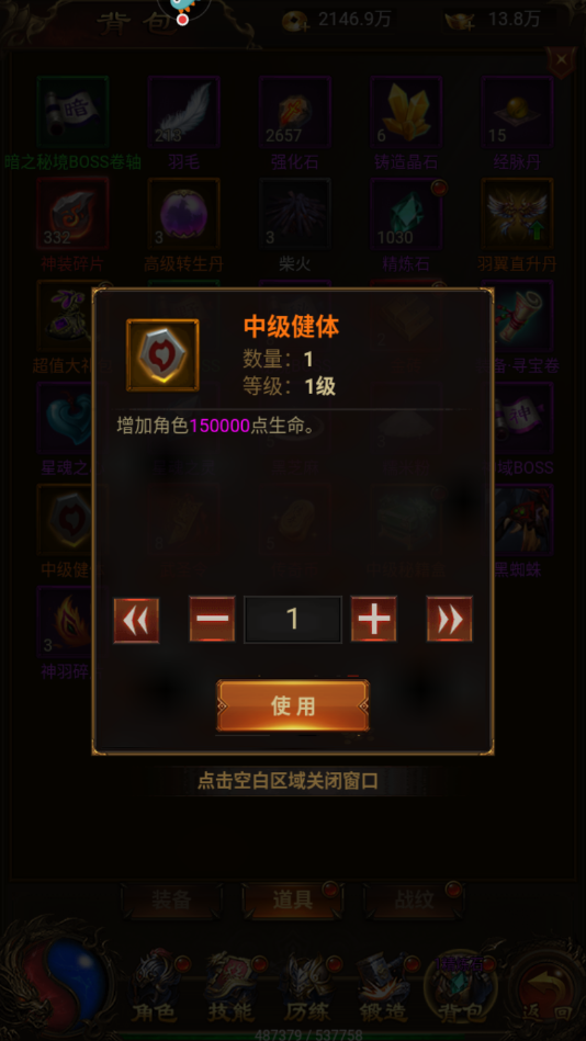 (2)宝石等级:战狂之力是分中级和高级的,每一种宝石最多只能存在一种,也就是中级或者是高级的战狂之力一个角色最多只能带一个。