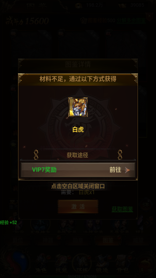 4、VIP奖励:达到指定VIP可以得到“至尊神卡”的图鉴,只有高级VIP才能领取。