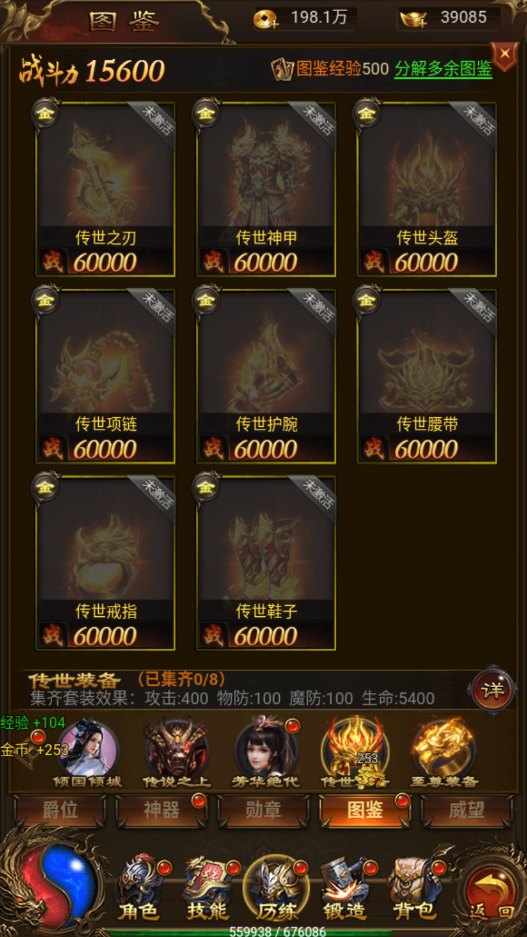 6、其他图鉴:传悦之上、芳华绝大、传世装备、至尊装备这些类型的图鉴没有固定获取方式。