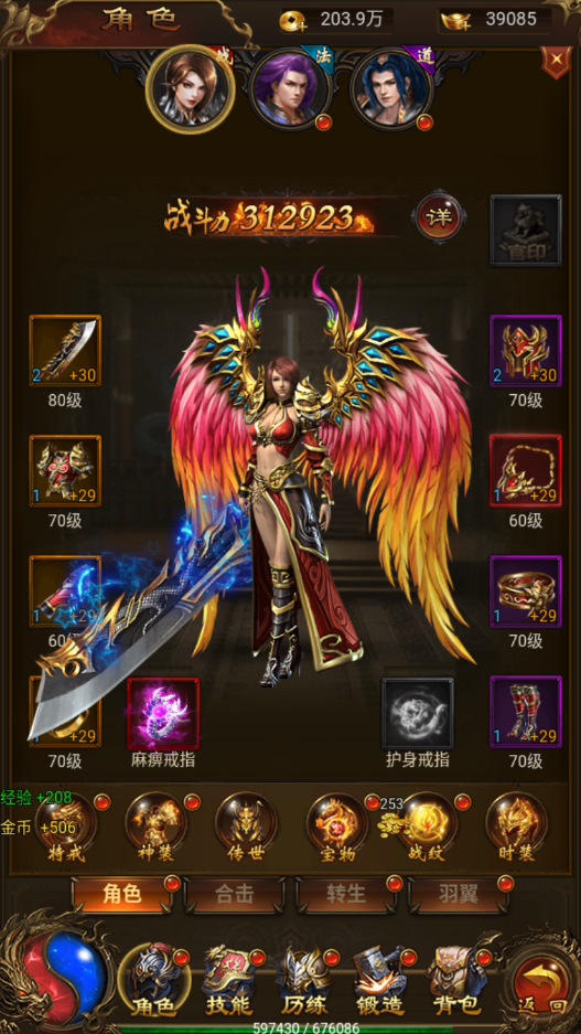2、使用装备·寻宝卷寻宝可以获得热血装备、至尊神装、神装、橙装以及其它珍贵材料,飞速提升战力。