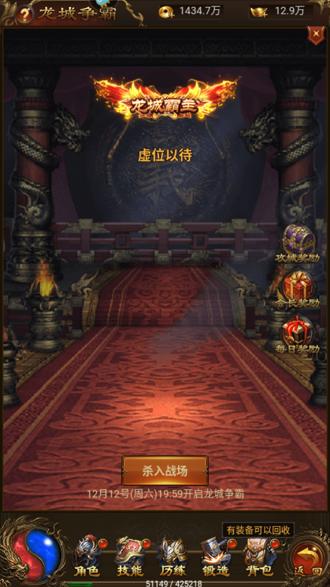 (4)如果玩家在皇宫被击杀后,那么会回到城池之外,只有积分够了之后才能再次前进。