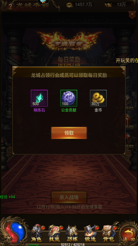 (5)玩家在城池中死亡或者是离线了,是不会清除积分值的,当积分累积到达目标值之后,那么即可领取对应的阶段奖励。