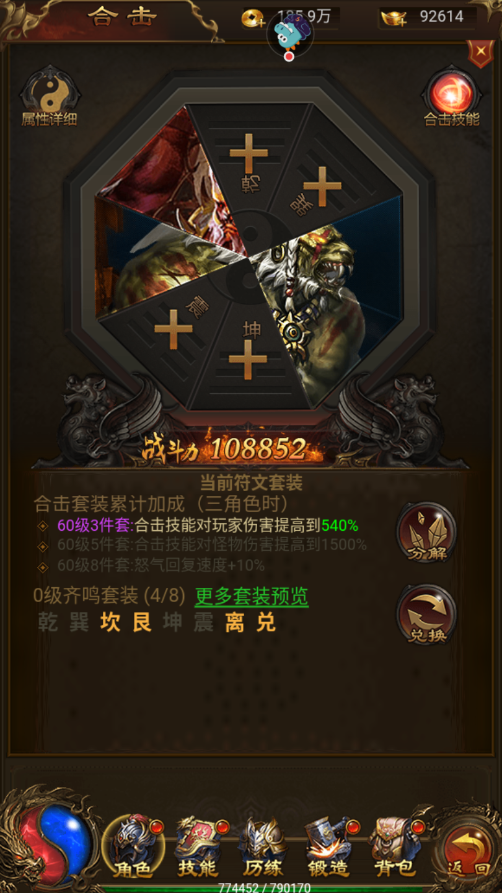 3、3转套装属性(三角色时):8件套:怒气回复速度增加30%高到540。