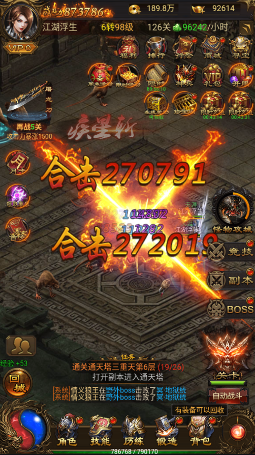 3、在正常情况下玩家在攻击怪物的时候会增加一定的怒气值,当怒气值满了之后即可释放合击技能,不过也有外界因素可以影响合击技能的攻击以及怒气回复速度。