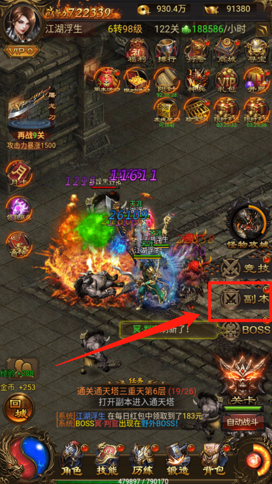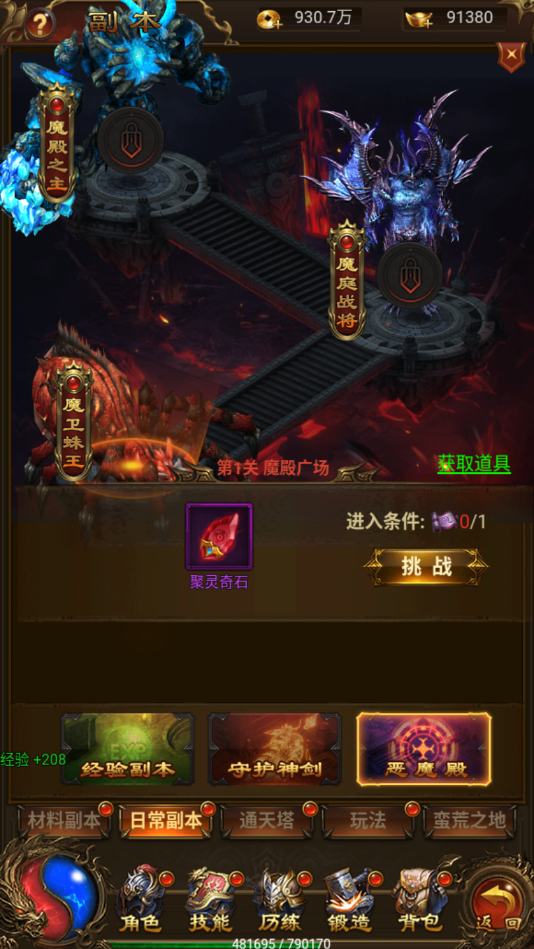(3)玩家每天拥有一次通关恶魔殿的机会,不过需要从恶魔广场开始挑战才行,通关前一关后方可继续挑战下一关。