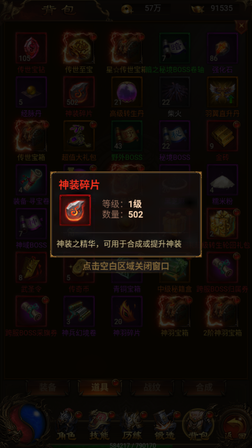 (2)合成神装和分解神装得到的神装碎片数量是一样的,也就是说这两者之间是可以自由兑换的,大家可以尽情的为进行升级。