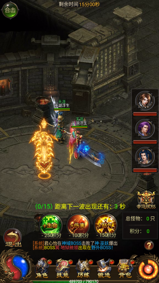 (3)该副本一共有15波怪,需要玩家全部击杀,或者是达到刷新时间之后,系统自动出现下一波怪物。