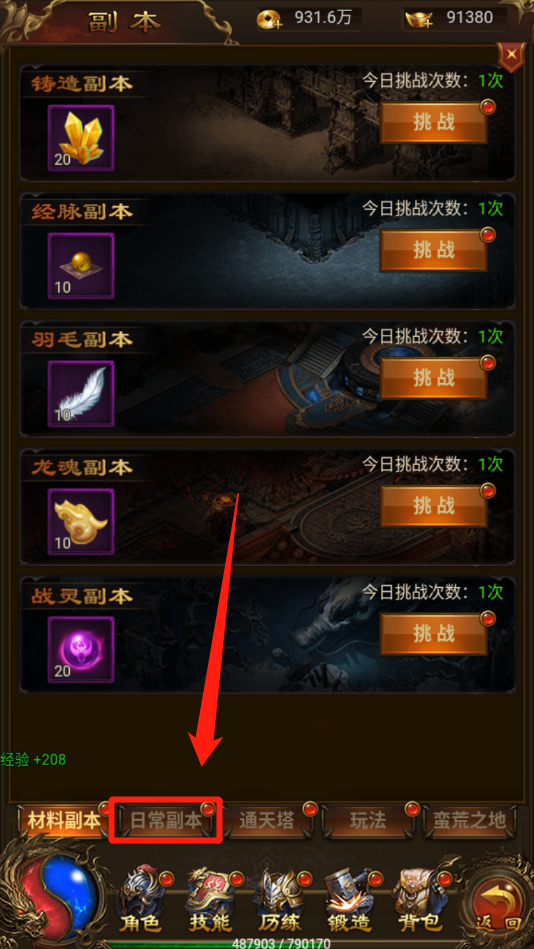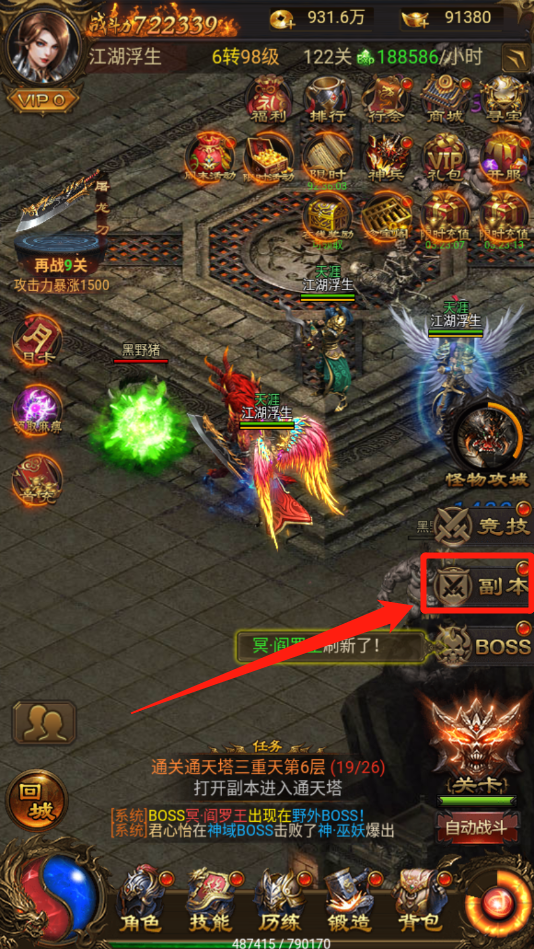 (1)副本攻略1:为了更快速杀怪,建议提升群体攻击能力,战士这种PK和单体较强的角色发挥不了太好得作用,推荐多强化一下法师。