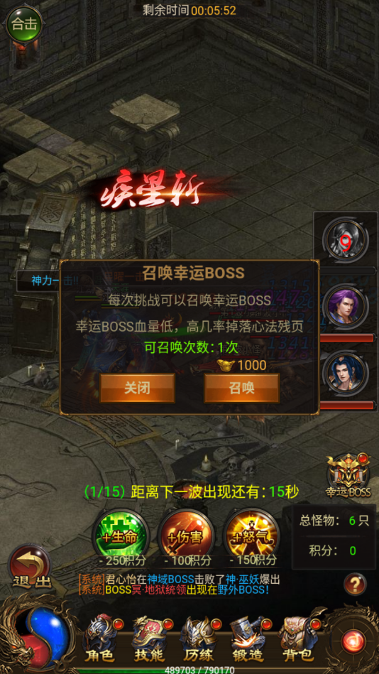 (7)召唤幸运BOSS可获得高品质心法部位转生等级,不过不会影响道具的爆率。
