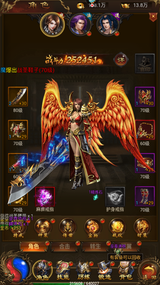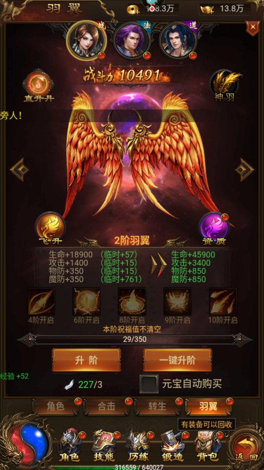 (4)翅膀:翅膀的玩法比较多假的属性值也比较全面,翅膀所需要的材料在副就本可以打的来,因此也需要着重培养。