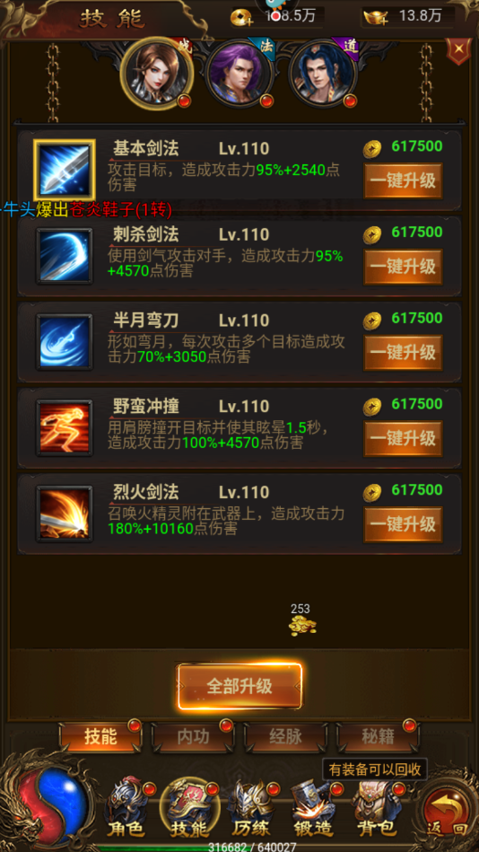 (2)内功:内功可以带来伤害减免,不过大家初期的金币数量不够,因此也要学习的太多,先把20%的基础伤害减免学出来就行。