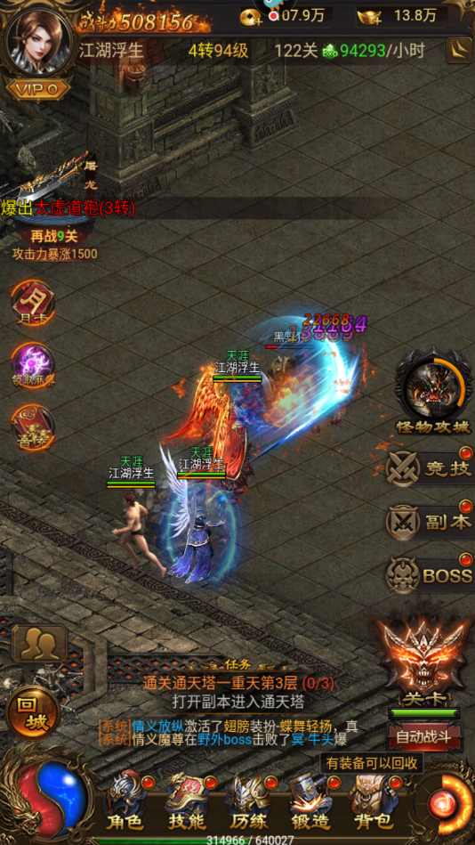 (2)合击:合击可以提升必杀技的伤害以及技能冷却时间,在打个人BOSS和竞技场的时候非常的游泳。