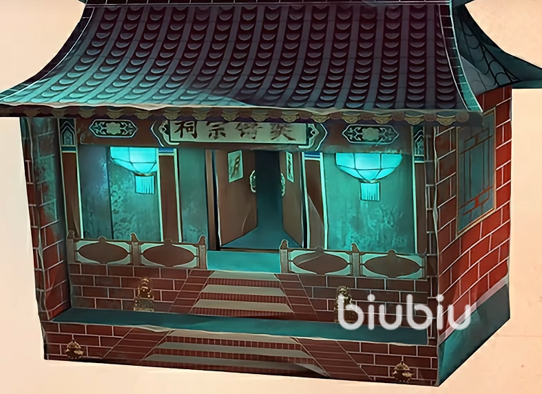 除了时装以外,目前还有一款配套的金挂。这个金挂便是游戏内奘铃村的祠堂。这个祠堂本身的颜色也会有所变化,具体变化的情况应该也是和人物的状态来进行的。