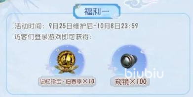 本次的中秋活动官方将其命名为拾光之旅,这个主题活动将会在9.25日维护之后陆续进行开启。首先该活动的第一个福利是在游戏维护结束之后可以触发。玩家们只要登录游戏便可以领取记忆珍宝旧赛季10个,除此以外还有着额外的窥镜100个。这些都只要玩家们进行登录便可以直接领取到。