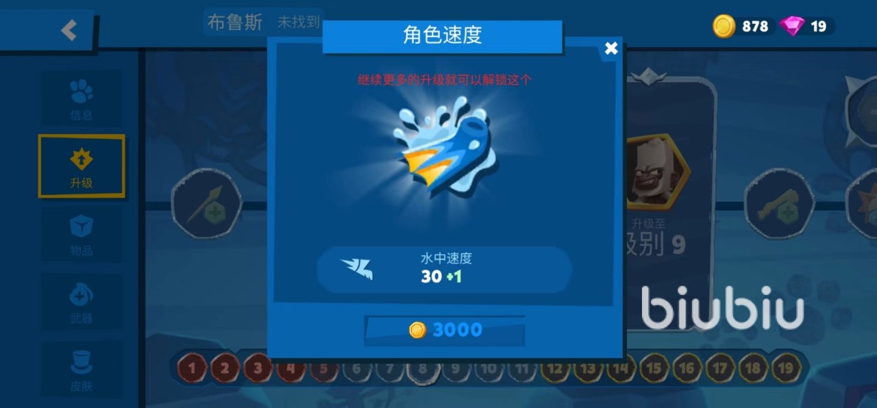 最后金币还可以提升角色某些属性,比如角色在水中的速度等等,具体角色可提升的属性不同。