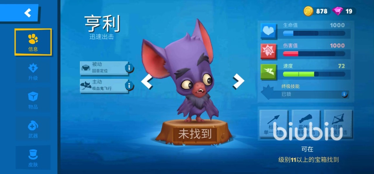 主动技亨利化身吸血鬼,可以高速飞行甚至是越过一些矮小的障碍物。期间被它咬住的第一个敌人,不仅会受到伤害,自身还会恢复一定的生命值。