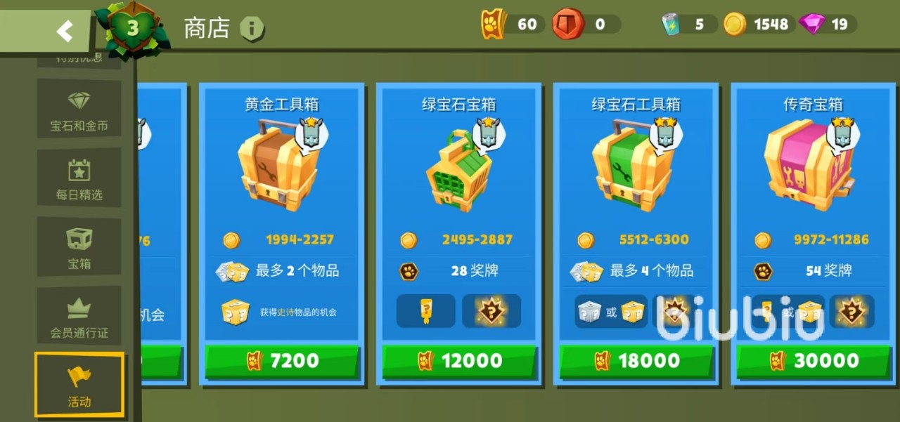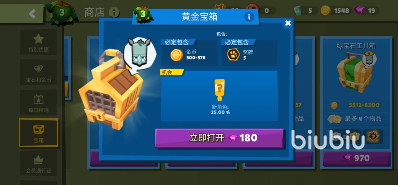 游戏中玩家只要参与对局,结束后就能获得宝箱奖励。宝箱不仅仅开出金币、角色奖牌,还有一定的几率的可以开出新角色。并且等级越高的宝箱开出的角色概率越高,且可开出的角色越稀有。值得一提的是宝箱奖励的品质是根据玩家战斗表现来评判的,即玩家当局杀人越多、排名越靠前,获得宝箱品质越好,所以每场游戏,玩家务必都要认真对待哦。当然玩家要是有条件,也可以直接到商城中购买一些好宝箱,虽然是概率,但只要开的多,概率就上去了。