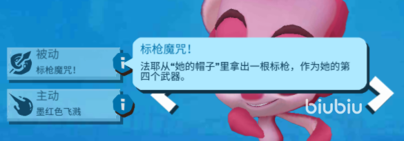 它的被动技能为标枪魔咒,这个技能可以让法耶从它的帽子内拿出一杆标枪,成为它的第四个武器,属于增加了一个攻击的手段,搭配前三个武器,能让法耶的输出实力翻倍提升,是一个不可多得的海洋动物,我们可以放心的去使用它战斗。