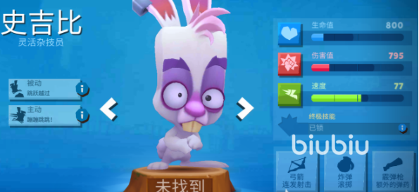 史吉比被称为灵活的杂技员,在游戏内它的灵活性可是非常高的,拥有超多蹦跳的技能,它的基础面板其实是比较弱的,所有的属性都没有过千,而且都在800左右,它的速度也才77,这其实并不符合常理,毕竟兔子可是速度的象征,中规中矩的面板并没有给其带来多好的口碑,单从属性方面来看的话,史吉比绝对是不值得玩家们去培养的,我们在了解了这个角色的基础属性之外,再来看一看它的技能。