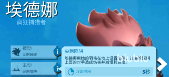 主要还看一眼他的技能,埃德娜主要也是依靠技能进行输出的,两个技能,主动技能为尖刺陷阱,埃德娜可以用它自身的羽毛在地上设置陷阱,只要踩在上面的敌人都会造成大量的伤害,并且陷入减速效果,基础伤害高达300,玩家一旦掉入陷阱。就会无力逃脱,如果再搭配一个强势的队友,那么完全可以将其击杀。
