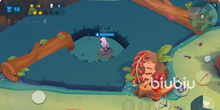 而如果面对的对手是长颈鹿,茉莉这种类型的,那么就可以使用弓箭来对付它们,让奥利成功的对他们进行伏击,而且灌木当中可以隐身,那么就可以在灌木里面等到时机,还可以用灌木补充自身血量。