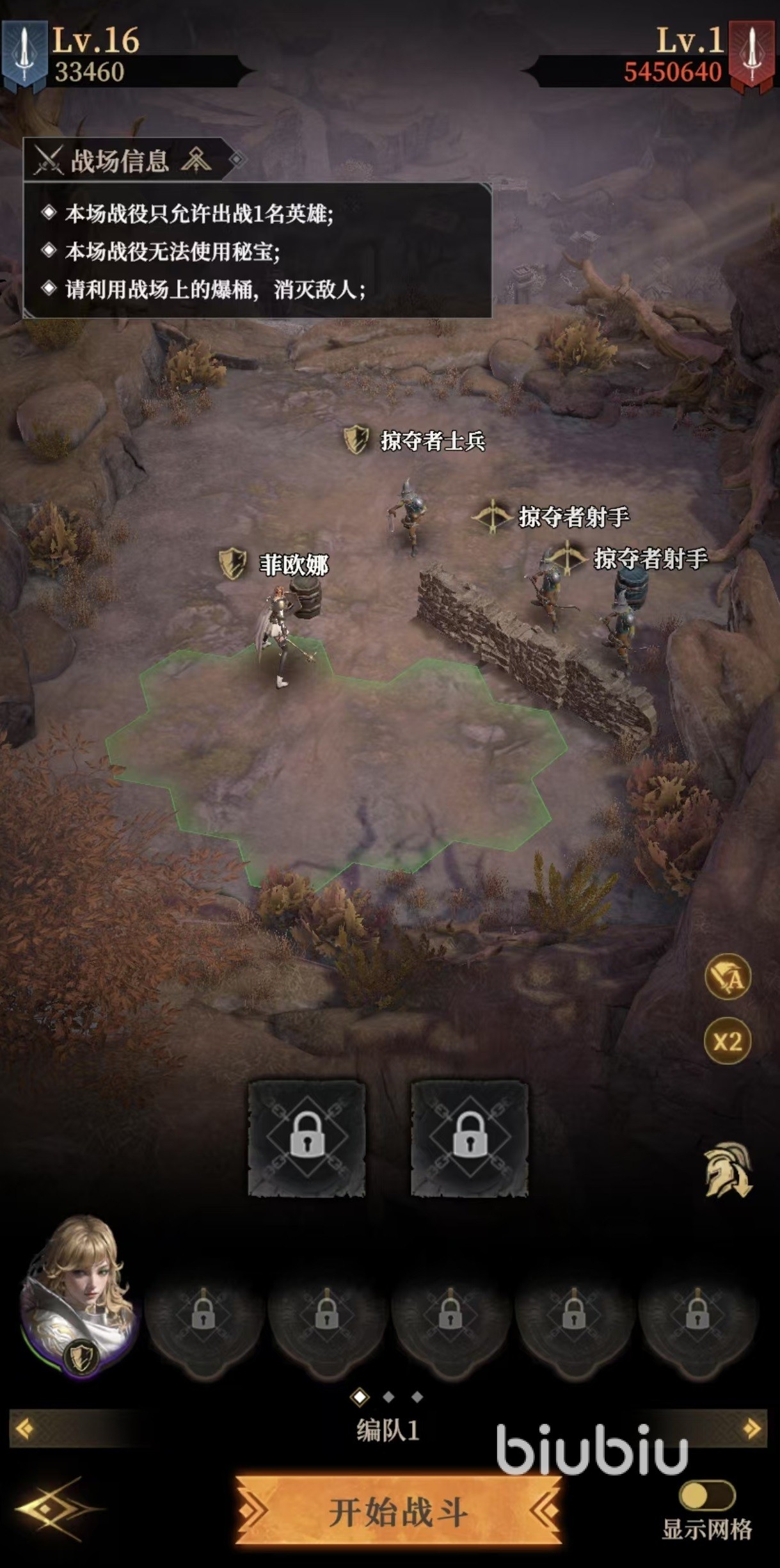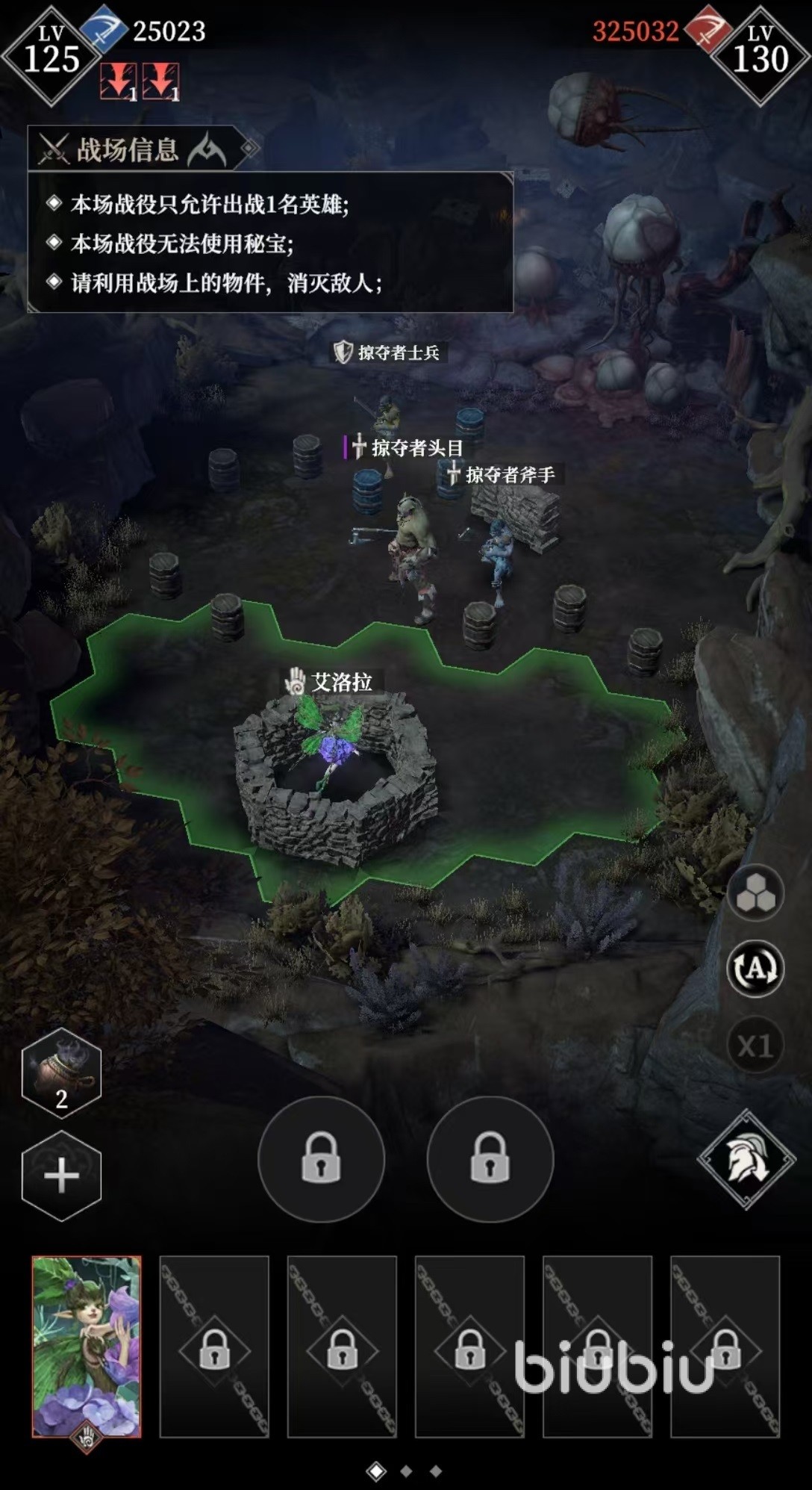 这项活动之所以比较有难度,是因为在战斗时不同营地有不一样的要求。先来看第1个,要求是只出站名英雄出战,无法使用秘宝。需要利用场上的爆桶去消灭敌人。这里就要选择远程,尽量不占黑色区域,防止怪物绕桶过来。接下来就是合理利用场上的桶,将怪物消灭掉就可以了。第2个营地只允许出战一名英雄,无法使用秘宝,需要利用战场上的物价去消灭敌人,同样是去点桶,注意站在比较远的位置就可以。