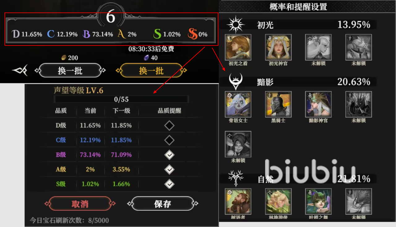 接着再为大家详细介绍一下公会的功能和作用,在公会可召唤新英雄,公会等级影响可招募英雄的数量上限,但不影响英雄品质;若是提升声望可提高高品质英雄(如SS级)的召唤概率,但声望只能通过刷新提升。