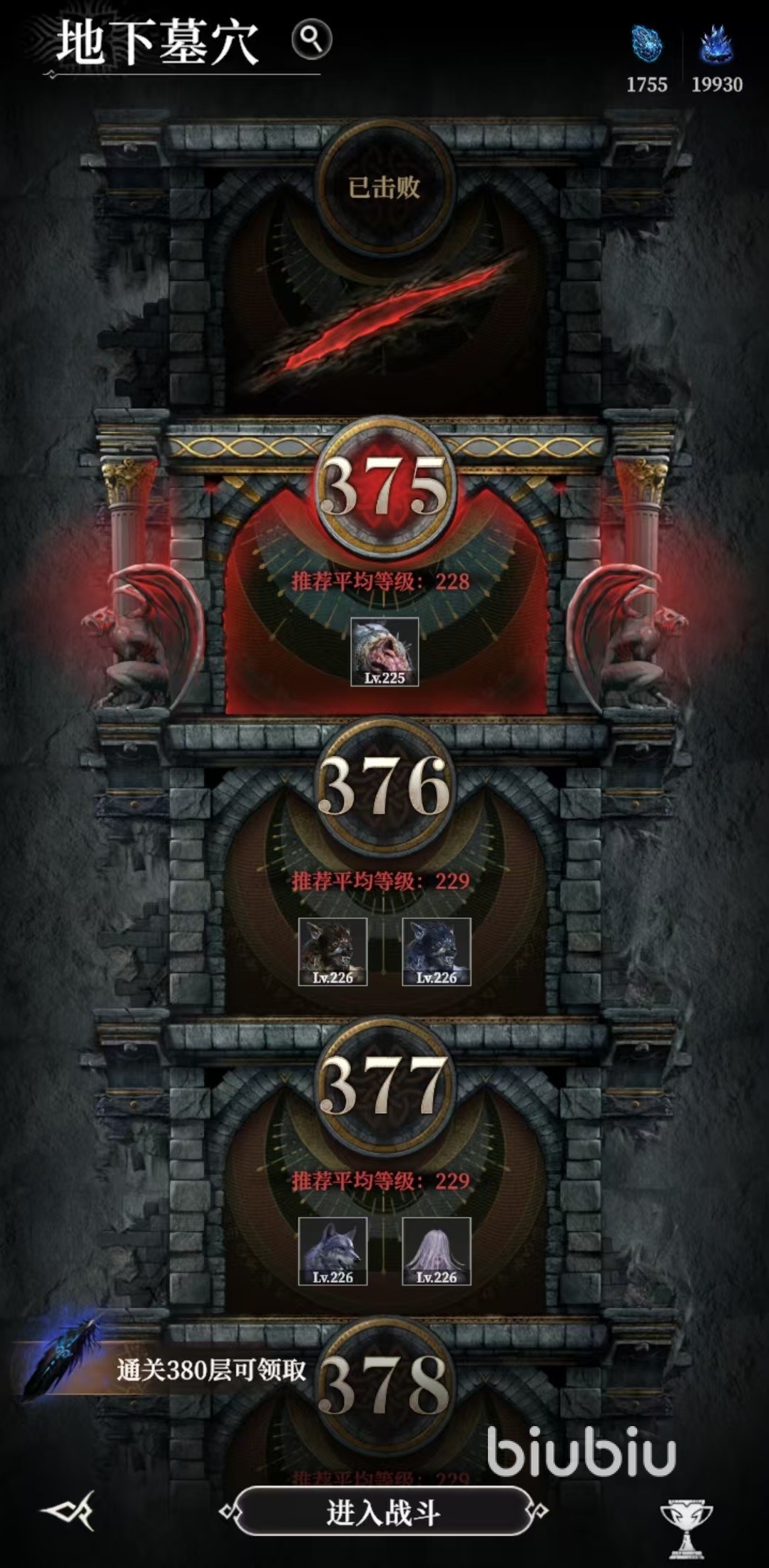 地下墓穴类似于闯关玩法,大家需要从第1层开始不断战斗,每个关卡都有推荐的平均等级和推荐战力,但是对于玩家来说,只要能够把握好阵容,是可以实现越等级和越战力挑战的。在墓穴后期,跨战力挑战才是常态,这项活动并不是固定阵容,而是需要频繁进行更换。大家要根据不同关卡的特点,选择防御、输出和治疗等不同功能的角色,一起搭配起来才能更好地进行战斗。