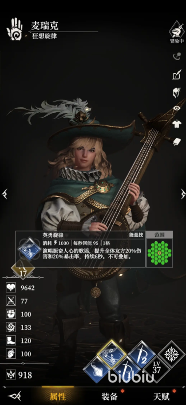 狂想旋律是非常不错的辅助,他的“共鸣”能在每拥有1个增益时让伤害提升15%,“咒骂”能在生命低于50%时使周围2各敌人沉默,无法使用能量技,每秒失去100点能量持续10秒,他的能量技会演唱振奋人心的歌谣,提升所有队友20%伤害和20%暴击率6秒,有他在能把全队的输出提高,不管什么样的阵容都很适配。