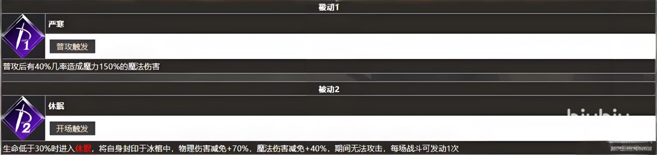 该角色属于秩序阵营,职业为冰霜法师,核心机制为永冬旋律。他通过技能为全队提供了攻速加成,并可以冻结敌方的目标,兼具着增益与控制双重功能。普通攻击可以对于敌方单体造成35%魔力和35%攻击力的冰霜伤害,有着15%概率附加冰痕。还可以附加永动印记,并使自身获得冰晶护盾。被动技能每两秒可以为随机友军附加冰霜庇护,并且自身攻速提升5%。当敌方存在三层以上冰衡时,可以额外冻结目标两秒。它的形态切换到未觉醒时,以攻速简易为主,觉醒后解锁霜雪领域,大幅度的去提升团队的生存能力。