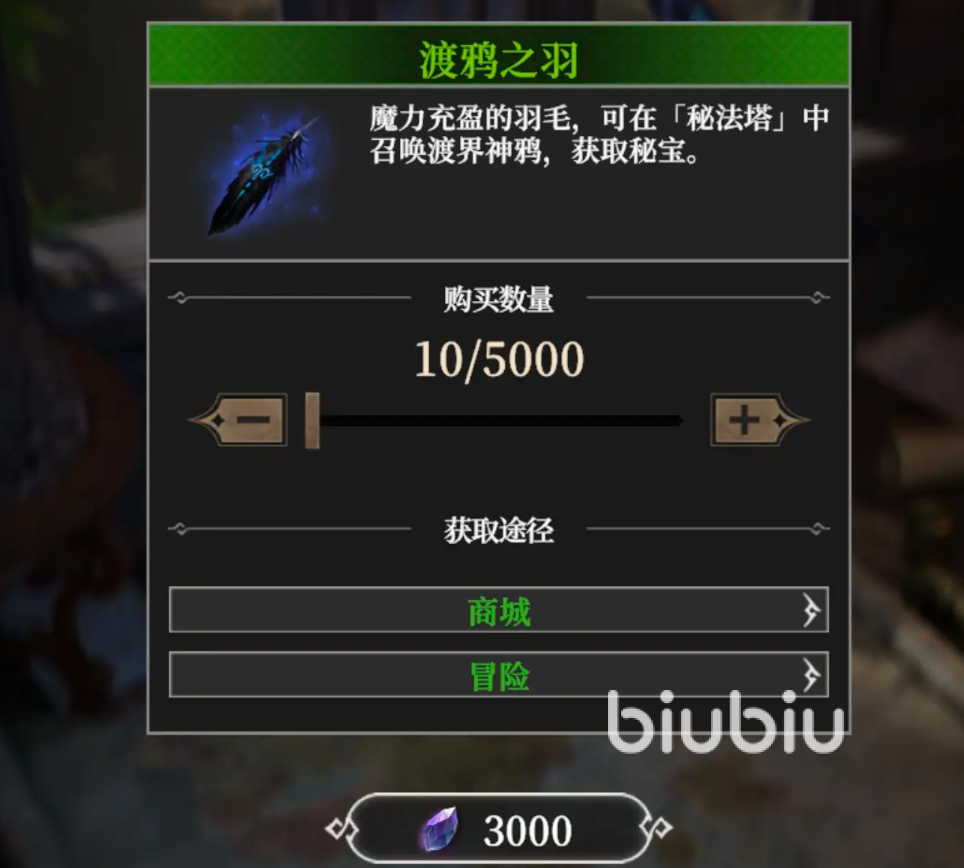 在进行了若干次召唤后,也是会有“保底机制”可以触发,保底一个史诗品质或以上的秘宝。获得“渡鸦之羽”的途径也比较多样,比如每日签到奖励、主线任务、商店兑换、限时活动等都会给到一些。要注意多攒一攒,不要每次有就用,十连比单抽更划算,收益和性价比更高。