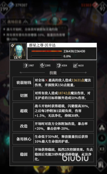 沃辛达这位boss的核心威胁在于其高额的魔法伤害和锁定机制,战斗的过程中他会优先攻击玩家队伍中战斗力最强的角色,让后削弱我方角色的能量值,影响技能释放节奏。大家要注意的是,该Boss开局即拥有“超载”被动技能,大幅提升闪避能力,也会使得前期命中率降低。所以建议伙伴们在战斗初期集中火力进行猛烈输出,争取在其进入高闪避状态前尽可能压低血量,避免战斗拖入后期。