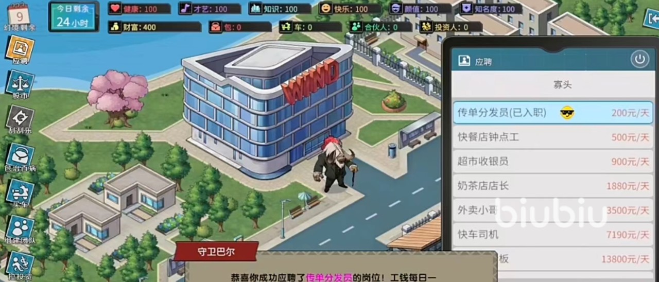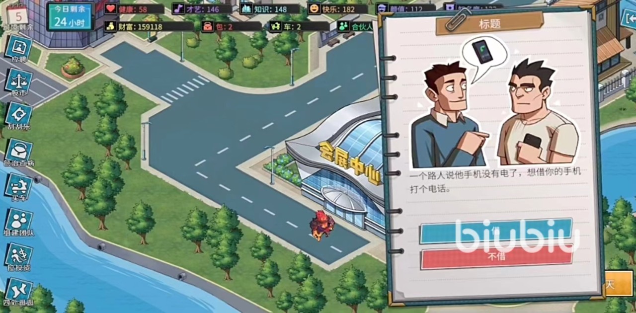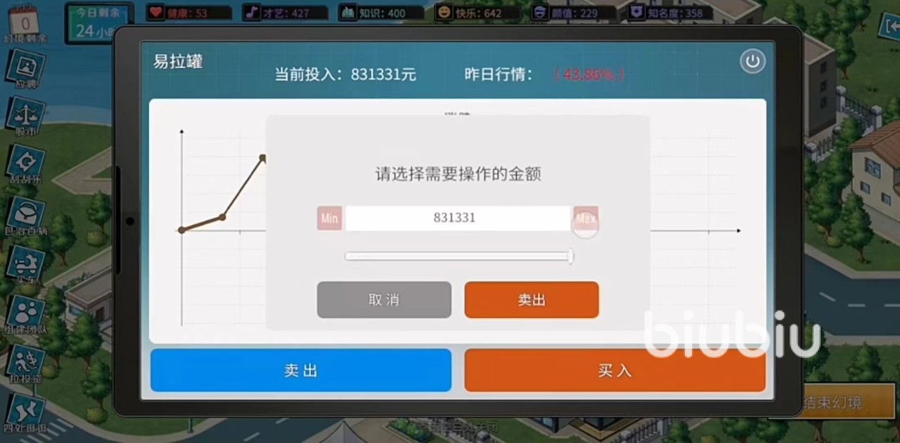 其中有一些需要注意的事项,如果没有触发随机事件,而且身上钱比较少,就不推荐去投入到股市或者是买包。有钱就去饮酒喝茶,没钱就去自拍看电视剧,保持特性总体平衡增长。如果有属性上200,就可以去找合伙人投资试一试,最好在所有操作结束后,特性加满之后再进行尝试。